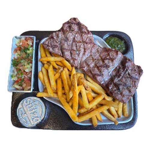 Carne madurada (350 grs), acompañado de ensalada de la casa, papa francesa o criolla y bebida de 400 ml.