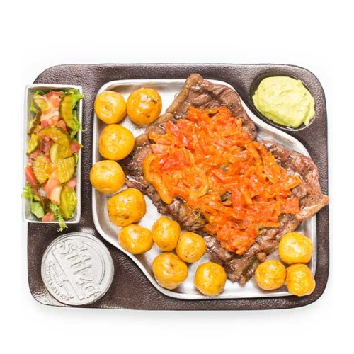 125 grs de lomo de res, con trozos de cebolla y pimentón. Acompañado de 140 grs de papas francesas y bebida de 400ml.