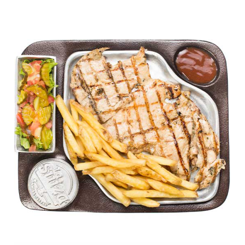 Pechuga de pollo (250 grs) acompañado de ensalada de la casa ,papa francesa o criolla y bebida de 400 ml.