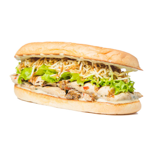 Pan artellano, 150 grs de filete de pollo, lechuga, salsa pa´pa compartir y papa chip.