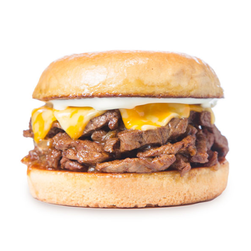 Pan especial,125 grs de lomo de res, con trozos de cebolla grille, queso colby jack y mayonesa.